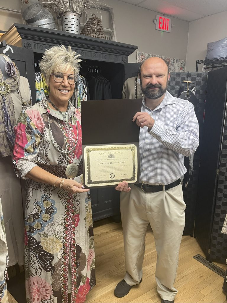 Catherine Donelle Gress, owner of Minerva Boutique in Lebanon, was presented with an official certificate of recognition for sharing her vision and boutique style apparel with the Lebanon community!