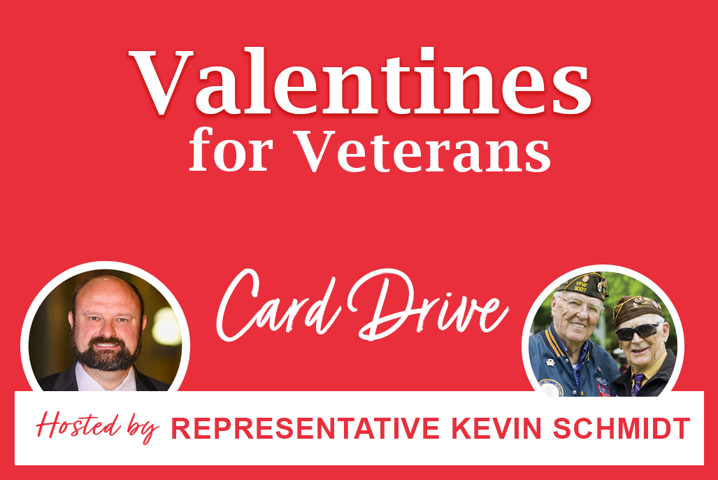 Rep. Schmidt is inviting everyone of all ages to create a Valentine’s card or drawing for our local heroes. Cards and drawings should be dropped off or mailed to Rep….